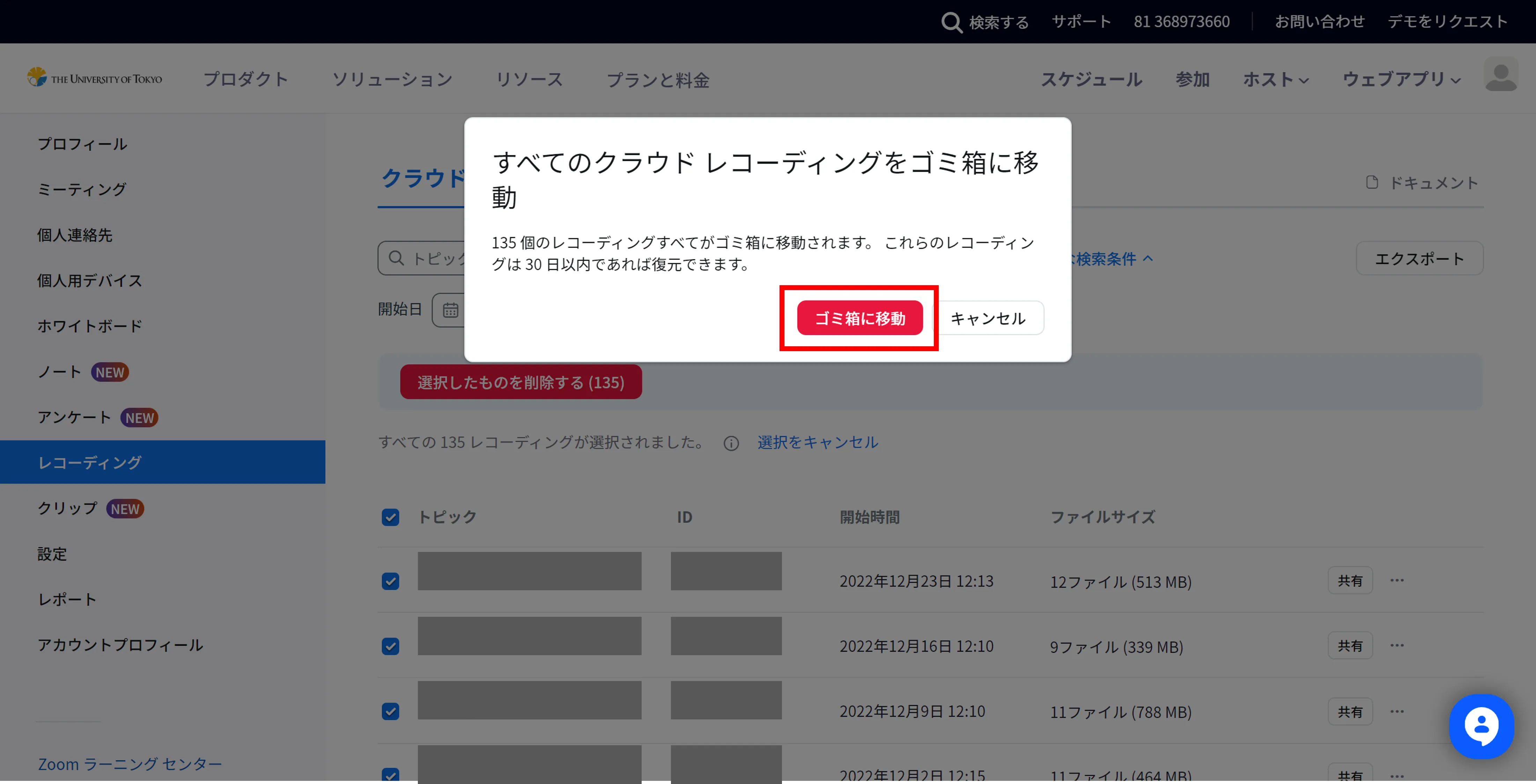 It has been three years since the University of Tokyo started providing Zoom in March 2020. During this time, the storage volume used for “cloud recording” has been increasing, and the associated cost burden is no longer negligible. Since the recorded data is stored infinitely and is expected to continue to grow in the future, we have concluded that it is necessary to reduce the volume used in order to ensure sustainable operation.