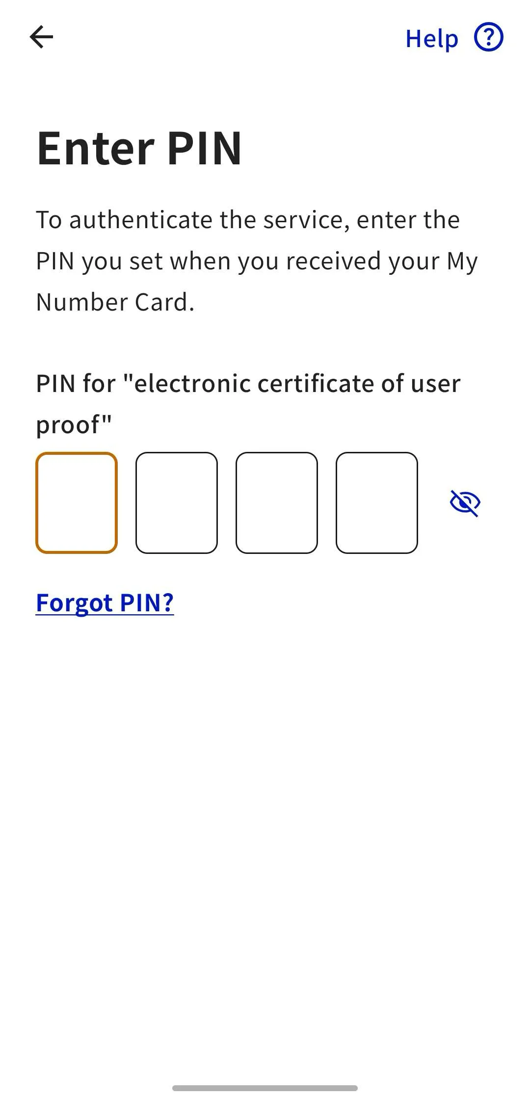 - The 4-digit PIN (Personal Identification Number) you registered when you received your My Number Card. (Electronic Certificate of User Proof (in Japanese), PIN for Card Info Input Support (in Japanese)) 2