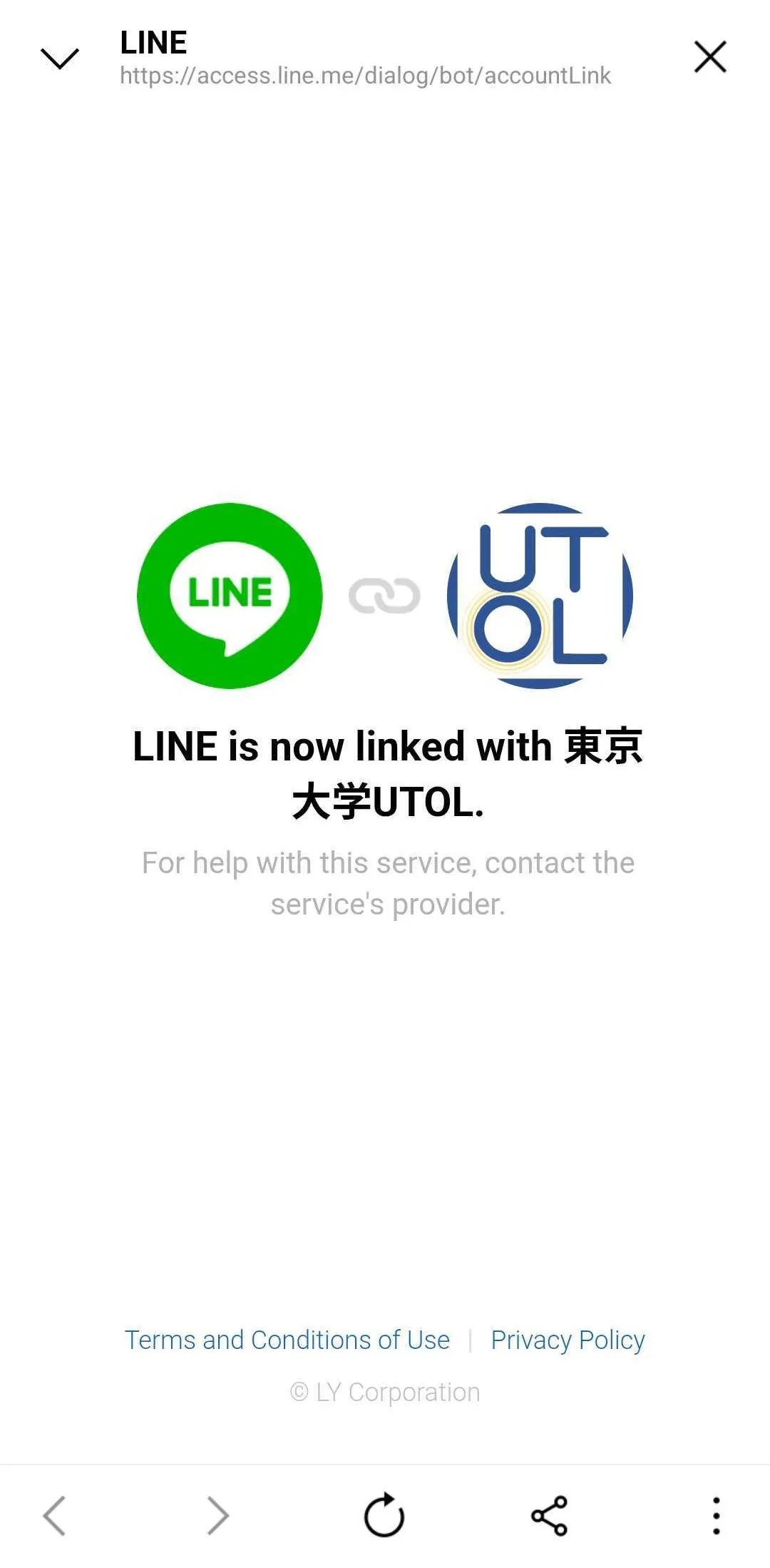 Please make sure the message “LINE is now linked with 東京大学UTOL.” has been displayed.