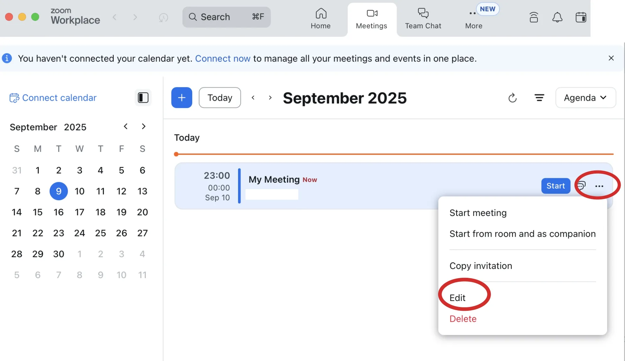 - Click Delete to delete the meeting.